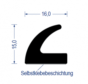 EPDM Moosgummi-Zargen-Lippen-Profil, 15x16 mm, schwarz, *selbtklebend