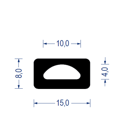 epdm, moosgummi-vierkantprofil mit hohlkammer, 8x15mm, schwarz, artikelnummer 2150020