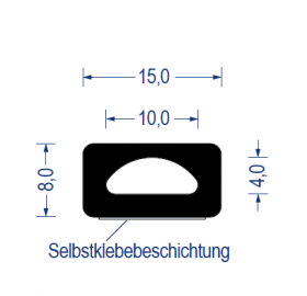 EPDM Moosgummi-Vierkantprofil mit Hohlkammer, 8x15 mm, schwarz, *selbstklebend