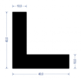EPDM Moosgummi-Winkelprofil, Außenschenkel 40x40 mm, Wand 10 mm, schwarz