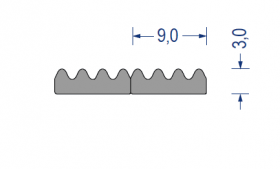 epdm, moosgummi, riefenprofil, kronenprofil, doppelmeter mit abrißkante, 3x9mm, grau, artikelnummer 2170001