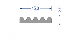 epdm, moosgummi, riefenprofil, kronenprofil, 3x15mm, grau, artikelnummer 2170003