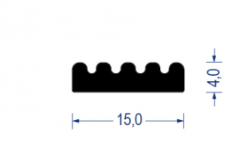epdm, moosgummi, riefenprofil, kronenprofil, 4x15mm, schwarz, artikelnummer 2170005