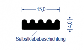 EPDM Moosgummi-Riefenprofil, 4x15 mm, schwarz, *selbstklebend