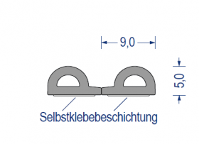 epdm, zellgummi, doppel-p-profil, doppelmeter mit abrißkante, 5x9mm, grau, selbstklebend, artikelnummer 2172001