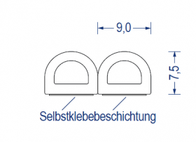 EPDM Zellgummi-Doppel-Hohlkammer-Profil, 7,5x9 mm Doppelmeter mit Abrißkante, weiß, *selbstklebend