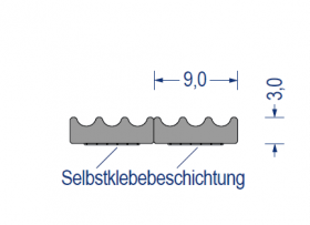 epdm, zellgummi, riefenprofil, kronenprofil, doppelmeter mit abrißkante, 3x9mm, grau, selbstklebend, artikelnummer 2172001
