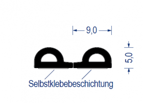 epdm, zellgummi, doppel-p-profil, doppelmeter mit abrißkante, 5x9mm, schwarz, selbstklebend, artikelnummer 2172001S
