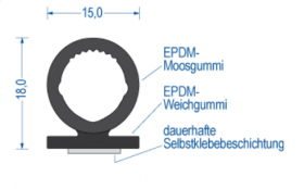 EPDM-Koextrusionsprofil 15x18 mm, schwarz, *selbstklebend
