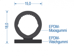 EPDM-Koextrusionsprofil 15x18 mm, schwarz