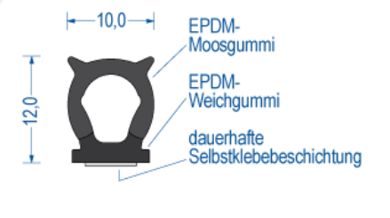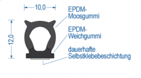 EPDM-Koextrusionsprofil 10x12 mm, schwarz, *selbstklebend