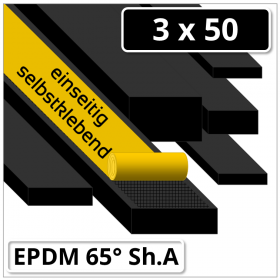 EPDM Gummi Rechtkantstreifen 3x50 mm 65 ±5° Shore A schwarz