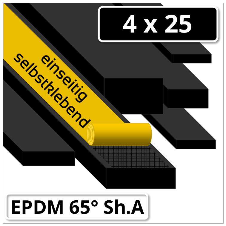EPDM Gummi Rechtkantstreifen 4x25 mm 65 ±5° Shore A schwarz