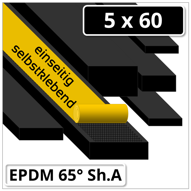 EPDM Gummi Rechtkantstreifen 5x60 mm 65 ±5° Shore A schwarz