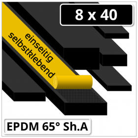 EPDM Gummi Vierkantstreifen 8x40 mm 65 ±5° Shore A schwarz