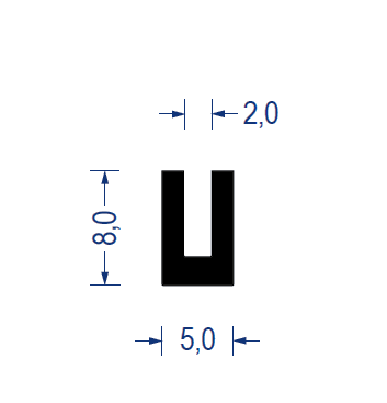 Sortiment Profile Gummi-Profile aus Vollgummi U-Profile Gummi U-Profil, KB 2 mm, 5x8 mm, EPDM 60° Sh.A., schwarz