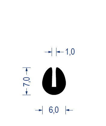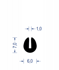 Sortiment Profile Gummi-Profile aus Vollgummi U-Rundprofile Gummi U-Rundprofil, KB 1 mm, 6x7 mm, EPDM 65° Sh.A., schwarz