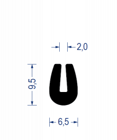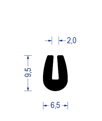 Sortiment Profile Gummi-Profile aus Vollgummi U-Rundprofile Gummi U-Rundprofil, KB 2 mm, 6,5x9,5 mm, EPDM 60° Sh.A., schwarz