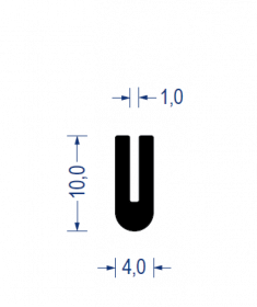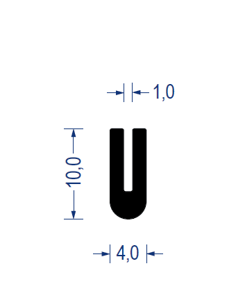 Sortiment Profile Gummi-Profile aus Vollgummi U-Rundprofile Gummi U-Rundprofil, KB 1 mm, 4x10 mm, EPDM 65° Sh.A., schwarz
