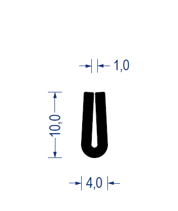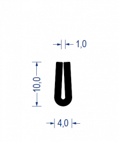 Sortiment Profile Gummi-Profile aus Vollgummi U-Rundprofile Gummi U-Rundprofil, KB 1 mm, 4x10 mm, EPDM 60° Sh.A., schwarz