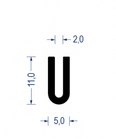 Sortiment Profile Gummi-Profile aus Vollgummi U-Rundprofile Weich-PVC U-Rundprofil, KB 2 mm, 5x11 mm, 57° Sh.A., schwarz