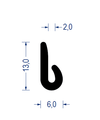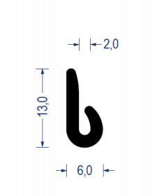 Sortiment Profile Gummi-Profile aus Vollgummi U-Rundprofile Gummi U-Rundprofil, KB 2 mm, 6x13 mm, EPDM 65° Sh.A., schwarz