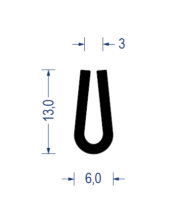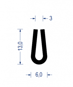 Sortiment Profile Gummi-Profile aus Vollgummi U-Rundprofile Gummi U-Rundprofil, KB 3 mm, 6x13 mm, EPDM 65° Sh.A., schwarz