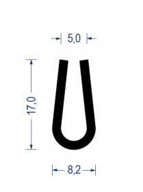Sortiment Profile Gummi-Profile aus Vollgummi U-Rundprofile Gummi U-Rundprofil, KB 5 mm, 8,2x17 mm, EPDM 65° Sh.A., schwarz