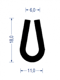 Sortiment Profile Gummi-Profile aus Vollgummi U-Rundprofile Gummi U-Rundprofil, KB 6 mm, 11x18 mm, EPDM 65° Sh.A., schwarz