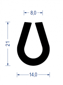 Sortiment Profile Gummi-Profile aus Vollgummi U-Rundprofile Gummi U-Rundprofil, KB 8 mm, 14x21 mm, EPDM 70° Sh.A., schwarz