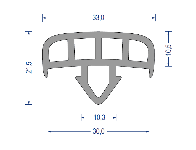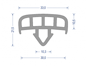weich-pvc glasauflageprofil, weich-pvc polsterprofil, fassung 10,3mm, auflage 33mm, weich-pvc 85° shore a, grau, artikelnummer 2330006