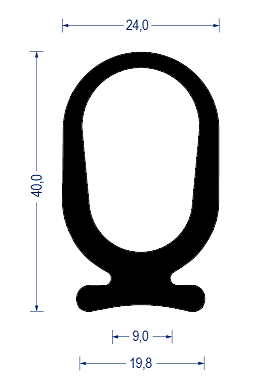 Sortiment Profile Gummi-Profile aus Vollgummi Rolltorprofile • Fingerschutzprofile Rolltorprofil, 24 x 40 mm, EPDM 70° Sh. A, schwarz
