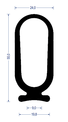 Sortiment Profile Gummi-Profile aus Vollgummi Rolltorprofile • Fingerschutzprofile Fingerschutzprofil, 24 x 55 mm, EPDM 70° Sh. A, schwarz