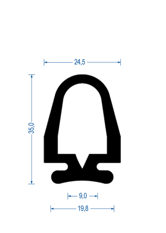 Sortiment Profile Gummi-Profile aus Vollgummi Rolltorprofile • Fingerschutzprofile Fingerschutzprofil, 24,5 x 35 mm, EPDM 70° Sh. A, schwarz