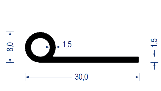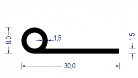 Sortiment Profile Gummi-Profile aus Vollgummi Fahnenprofile • Notenprofile Gummi-Kederprofil EPDM, 8/30 mm, Fahne 1,5 mm, schwarz