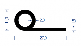 Sortiment Profile Gummi-Profile aus Vollgummi Fahnenprofile • Notenprofile Gummi-Notenprofil EPDM, 11/27 mm, Fahne 1,5 mm, schwarz