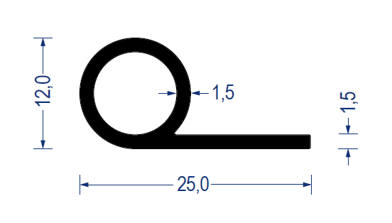 Sortiment Profile Gummi-Profile aus Vollgummi Fahnenprofile • Notenprofile Gummi-Kederprofil EPDM, 12/25 mm, Fahne 1,5 mm, schwarz