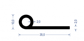Sortiment Profile Gummi-Profile aus Vollgummi Fahnenprofile • Notenprofile Gummi-Fahnenprofil EPDM, 10/35 mm, Fahne 2 mm, schwarz
