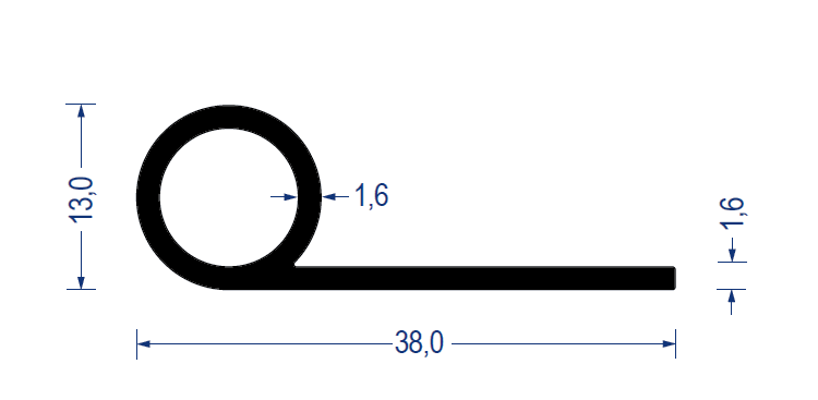 Sortiment Profile Gummi-Profile aus Vollgummi Fahnenprofile • Notenprofile Gummi-Kederprofil EPDM, 13/38 mm, Fahne 1,6 mm, schwarz