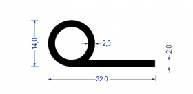 Sortiment Profile Gummi-Profile aus Vollgummi Fahnenprofile • Notenprofile Gummi-Fahnenprofil EPDM, 14/32 mm, Fahne 2 mm, schwarz