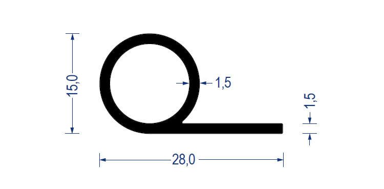 Sortiment Profile Gummi-Profile aus Vollgummi Fahnenprofile • Notenprofile Gummi-Notenprofil EPDM, 15/28 mm, Fahne 1,5 mm, schwarz