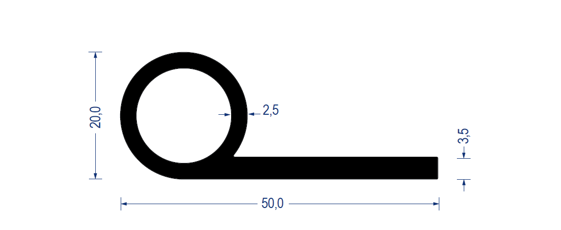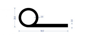 Sortiment Profile Gummi-Profile aus Vollgummi Fahnenprofile • Notenprofile Gummi-Notenprofil EPDM, 20/50 mm, Fahne 3,5 mm, schwarz