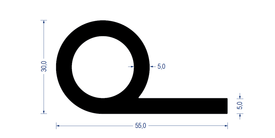 Sortiment Profile Gummi-Profile aus Vollgummi Fahnenprofile • Notenprofile Gummi-Notenprofil EPDM, 30/55 mm, Fahne 5 mm, schwarz