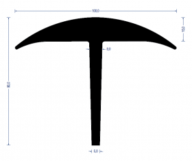 Gummi- Fugenprofil • Fugenabdeckprofil • Abdeckprofil • T-Profil, 100 / 5-8 x 80 mm, ca. 70 ±5° Shore A, schwarz