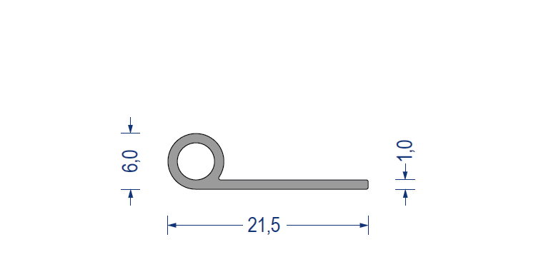 silikon fahnenprofil, silikon notenprofil, silikon kederprofil, 60° shore a, 6/21,5mm, fahne 1mm, grau, artikelnummer 2730001