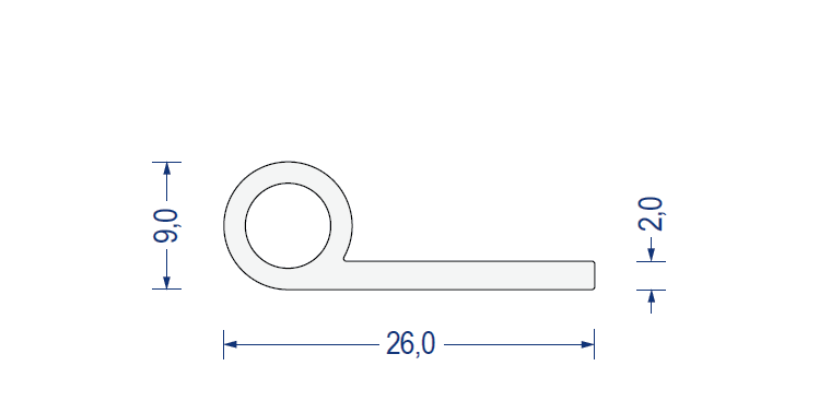 silikon fahnenprofil, silikon notenprofil, silikon kederprofil, 60° shore a, 9/26mm, fahne 2mm, transluzent, artikelnummer 2730003