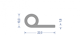 silikon fahnenprofil, silikon notenprofil, silikon kederprofil, 60° shore a, 10/22mm, fahne 1,8mm, grau, artikelnummer 2730005