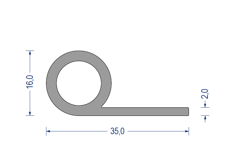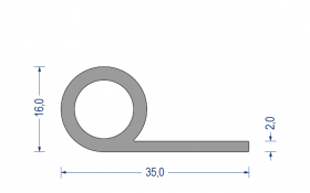 silikon fahnenprofil, silikon notenprofil, silikon kederprofil, 60° shore a, 16/35mm, fahne 2mm, grau, artikelnummer 2730007