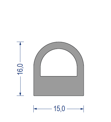 silikon hohlkammerprofil, silikon hohlkammer-profil, 60° shore a, 15x16mm, grau, artikelnummer 2740008