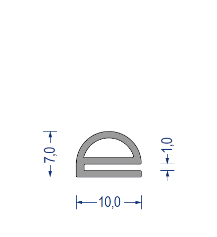 silikon hohlkammer-klemmprofil, silikon hohlkammer-profil, 60° shore a, 10x7mm, klemmbereich 1mm, grau, artikelnummer 2740011